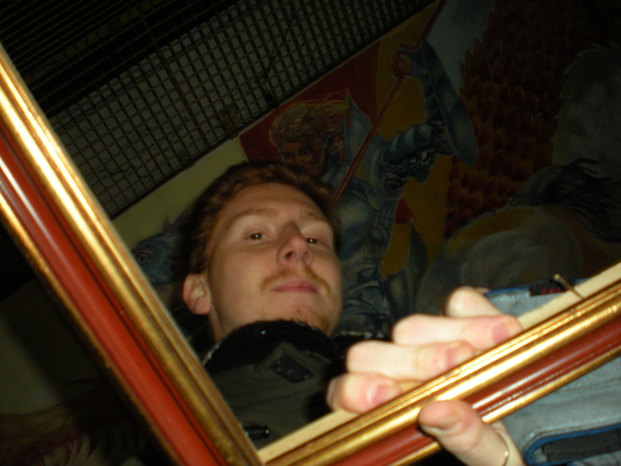 Ecco infine il nostro giovine giocatore che infine trova il soggetto degno di essere immortalato! Sullo sfondo, un prode San Giorgio infilza il povero Van Blessed perforando il suo cranio con una lancia.