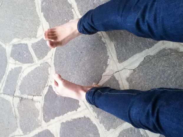 a piedi nudi sul pavimento bagnato fa alquanto freddo, appena scoperto D: