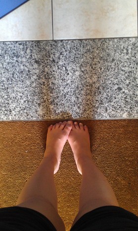 Scatta una foto ai tuoi piedi nudi fuori dalla porta di casa tua.