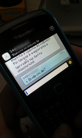 Ok, ok! Questa l'hanno creata apposta sapendo che prima o poi io l'avrei incontrata. Lo so. U_U perciò letta la missione mi sono affrettata a comporre il primo numero casuale che mi sovvenisse facendomi aiutare da una mia amica (controllando poi se corrispondeva al mio operatore telefonico così da non spendere soldi u.u) e poi... via con la fantasia! Mentre scrivevo e ripetevo ad alta voce una mia compagna di classe si è girata chiedendomi se avessi assunto sostanze stupefacenti. Dio santo che ridere! Così inviato il messaggio e fatto le apposite fotografie ho atteso qualche minuto che arrivasse una qualche risposta pronta a dare nuovamente libero sfogo alla mia fantasia. Gioia e delusione mi hanno colpito al vibrare del telefono. Non avrei potuto 'rinstupidirmi' nuovamente! Peccato! XD