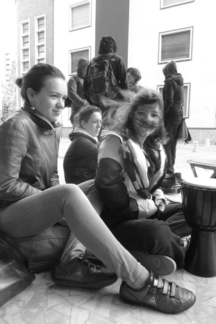 Anzi! La prima (la più giovane giocatrice di CCU) attende l'arrivo degli altri. Sguardo perso nel vuoto, corpo rannicchiato a scaldarsi per il gran freddo arrivato all'improvviso dopo una super giornata estiva da 30° all'ombra...allestiamo il nostro salotto sotto dei portici perchè il cielo minacciava pioggia, daltronde ci aveva già graziati la sera prima e non poteva essere troppo generoso...