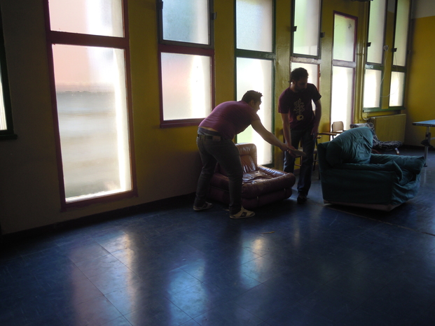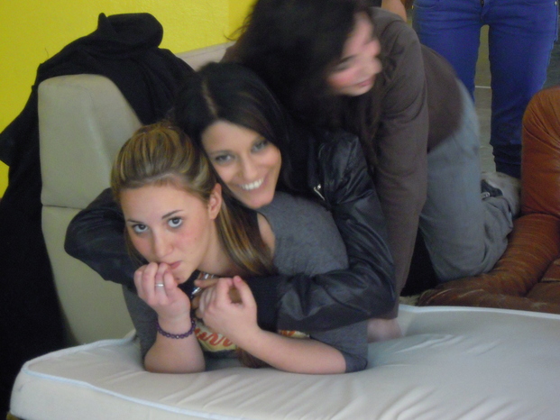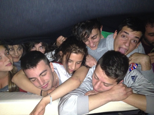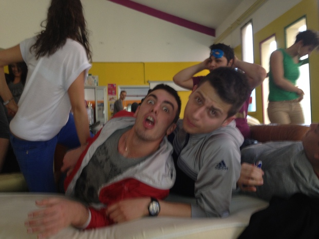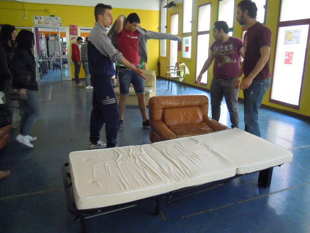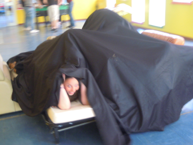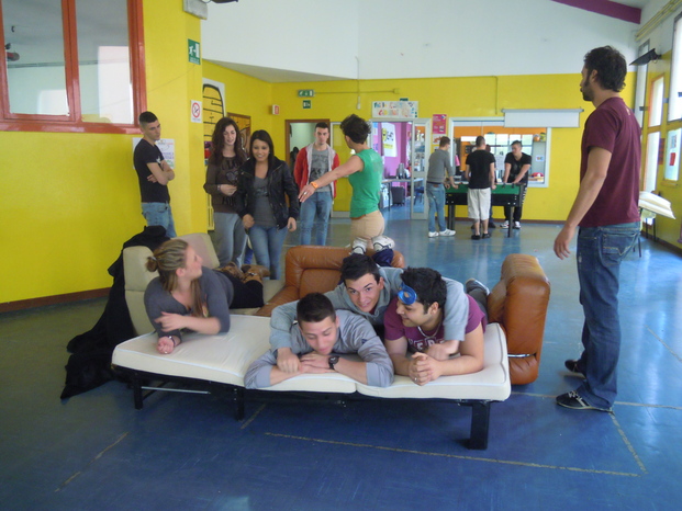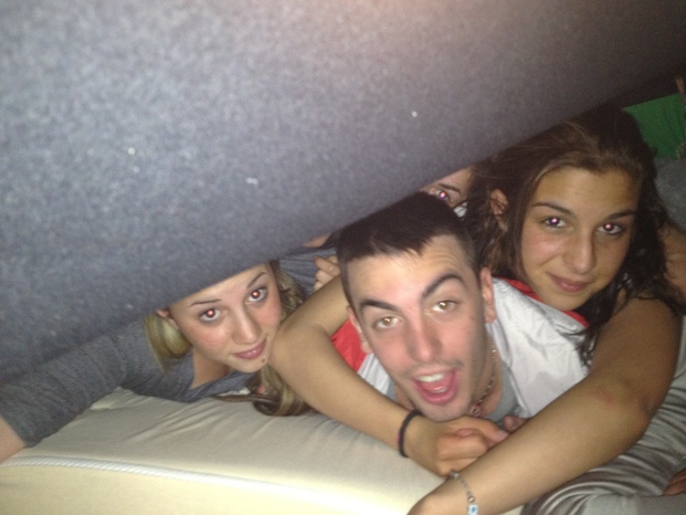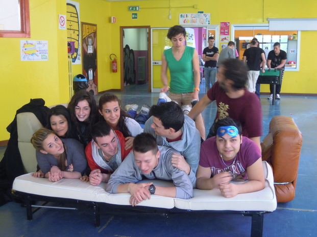 a Icaro non ci sono letti quindi abbiamo dovuto arrangiarci un po'...abbiamo preso qualche poltrona e un bel telo nero come lenzuolo e...clik, la fotografia è fatta!