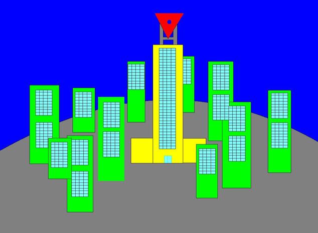 sembra un po triste come città... però mi piace il cielo completamente blu e l'inclinazione del mondo (la parte grigia, se ho ben interpretato) mi fa credere che tra un edificio e l'altro ci sia un sacco di spazio!!! (stile campo da calcio di holly e banji)