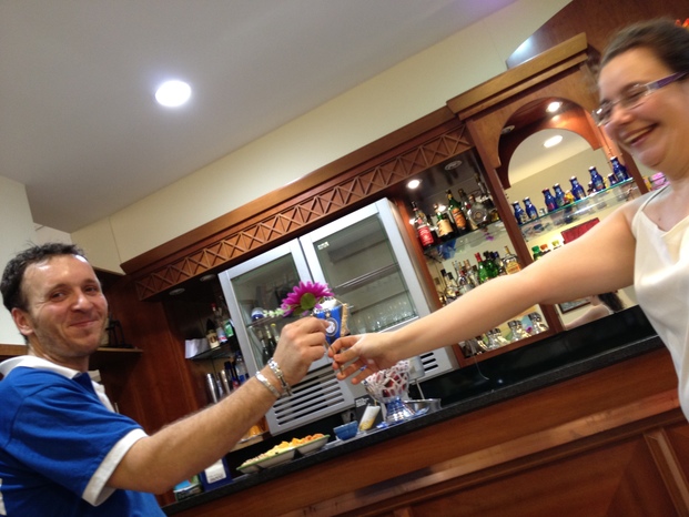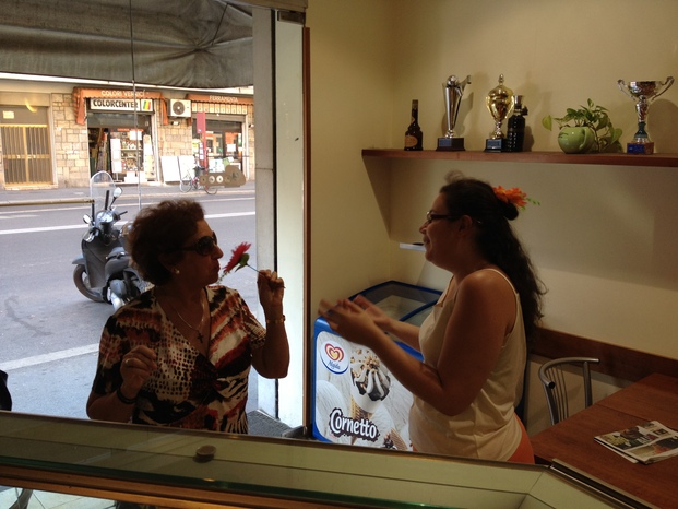 E così siccome il 2 agosto Deboroh era tutto il giorno dentro al Bar Moca3 sono andata a trovarlo con la precisa intenzione di bermi un buon caffè, e regalare i 20 fiori comprati durante la fiera di paese all'immensa cifra di 3 euro (che poi i fiori erano 24, mica 20...).
