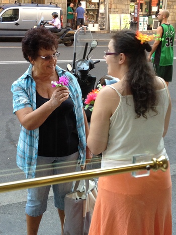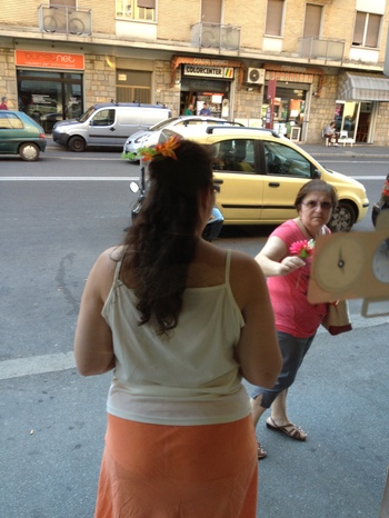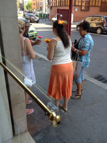 Alcuni hanno accettato il fiore di fretta andandosene via, alcuni sono stati fermati mentre aspettavano l'autobus, e hanno accettato di buon grado (un signore me ne ha chiesto uno anche per "una sua amica").