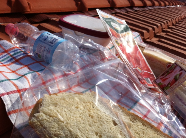 Così un sabato, facilitata dai lavori in corso, preparo tutto l'occorrente per svolgere un fantastico picnic (in sicurezza) sul tetto!
