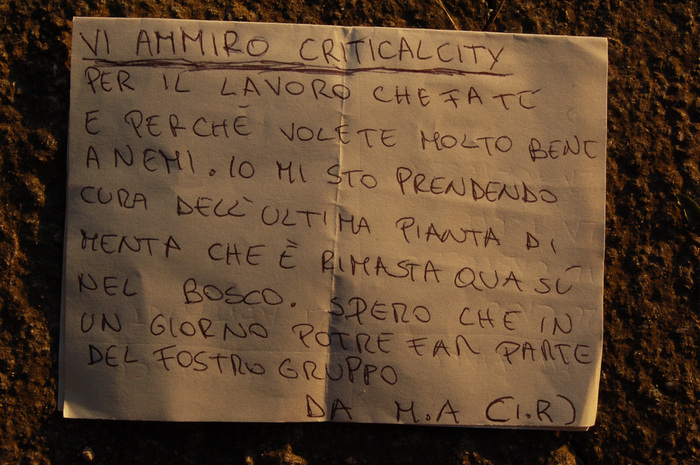 La casella postale collocata al Nodo, presso il belvedere Ceyrat, vuole essere giusto un'occasione di confronto tra diverse esperienze, da parte di chi vive quotidianamente questo luogo così come di chi è di passaggio... un luogo fisico in cui convogliare quindi differenti impressioni e condividerle.