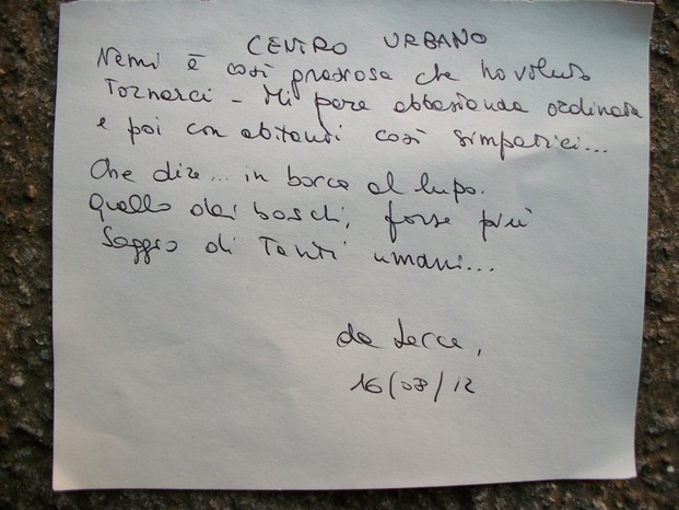 Ancor più meraviglioso leggere i biglietti, da quelli che comunicano col sindaco, che mi ha fatto sorridere a quello, il mio preferito su tutti, che "accenna un ricordo poetico", il fatto che parli di un ricordo dello scorso anno fa capire quanto tu sia assurdamente mitico!!!
