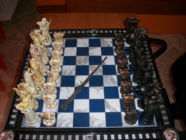 Da piccolo andavo totalmente pazzo per gli scacchi, gli adoravo. Mi insegnò a giocare mia nonna che con la santa pazienza mi spiegò alcune regole e strategia e passavo i pomeriggi interi a giocare con lei peccato che con il tempo questo passatempo è andato perduto. Ho ritrovato casualmente la scacchiera di Harry Potter che compare nella pietra filosofale e mi son chiesto perchè non fare una missione che includeva l'uso di una scacchiera?? Ho trovato questa missione e mi son dato da fare. Ogni pezzo ha una sua funzione specifica e sono: