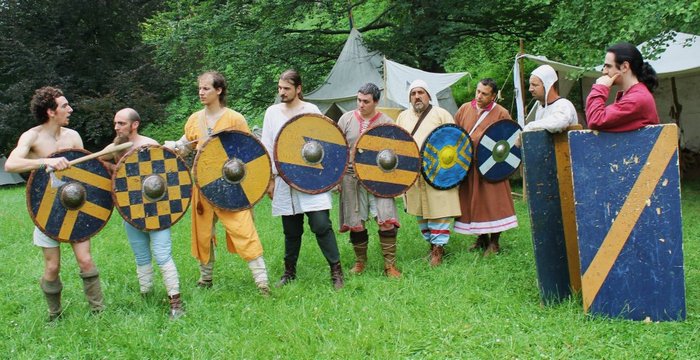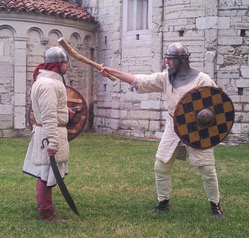 molto particolare: Il combattimento duecentesco italiano con l'utilizzo di mazza, falcione e scudo.