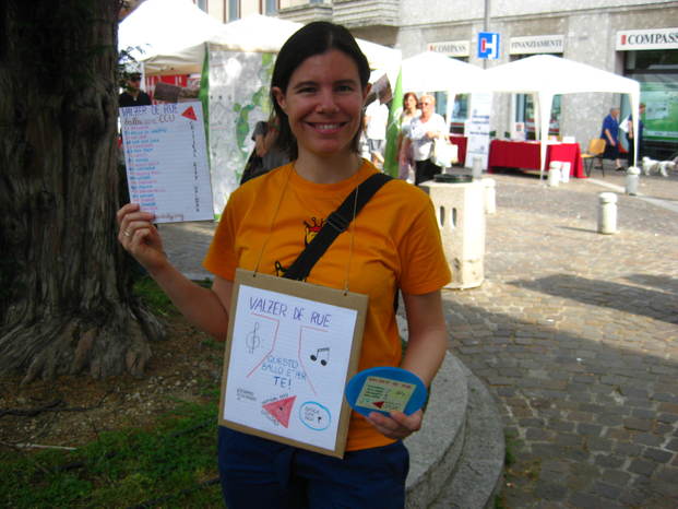 E così, penso a 20 balli diversi, li scarico e preparo cd e cartoncino per far scegliere ai miei passanti quale ballo ballare...