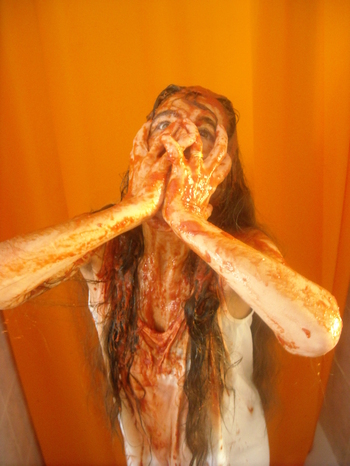 Fai veramente impressione con tutto quel pomodoro addosso e l'idea di omaggiare Carrie è davvero originale