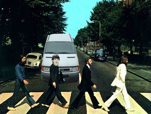 Reinterpreta la copertina dell’album Abbey Road dei Beatles.