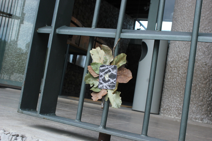 Ho disegnato una piccola candela accesa immersa nel buio dietro a del filo spinato perché sono rimasto molto colpito da un aneddoto che mi ha raccontato una ragazza che era nel bosco con me; praticamente legavano i prigionieri in fila con del filo spinato e li portavano davanti alla foiba (che non era altro che un buco molto profondo di una vecchia miniera o di origine naturale), poi sparavano al primo della fila e questo, cadendo, trascinava con se tutti gli altri.