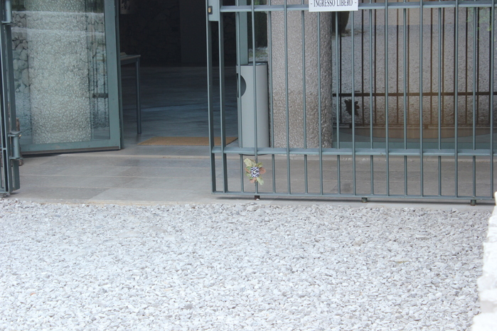 Decido di attaccare il mio quadretto sul cancello di entrata