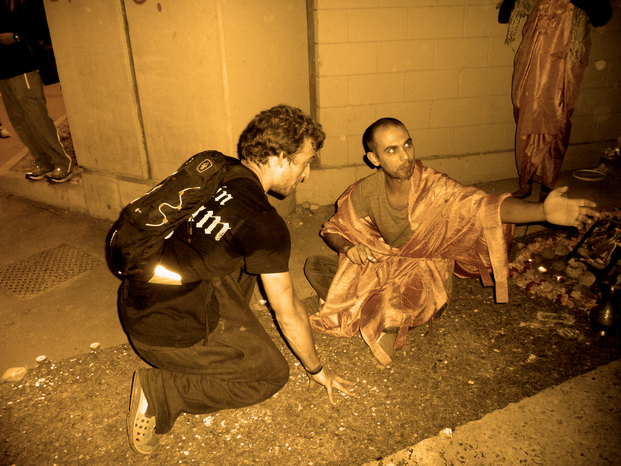 Prendiamo un tram e poi facciamo un pezzo a piedi, ma, non lontano dal checkpoint, cominciamo a vedere runners che corrono all'impazzata inseguiti da chaser cattivissimi.