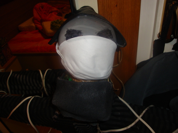 Il mio bellissimo( e cattivissimo) spaventapasseri è diventato uno di famiglia. Infatti dalla sua realizzazione alla sua installazione in loco sono passati 5 giorni e in tutto quel tempo è rimasto in camera mia a farmi compagnia, tanto che sono molto dispiaciuto di non aver potuto tenerlo con me! Ma si sa, le proprie creature crescono e bisogna lasciarle andare a compiere il proprio destino. La sua realizzazione è avvenuta a partire dall'idea di non voler utilizzare legno e altri materiali abituali, ma tubi e qualsiasi altra cazzata trovavo in casa. P.s. i tubi sono andato a recuperarli di nascosto in un cantiere in costruzione!