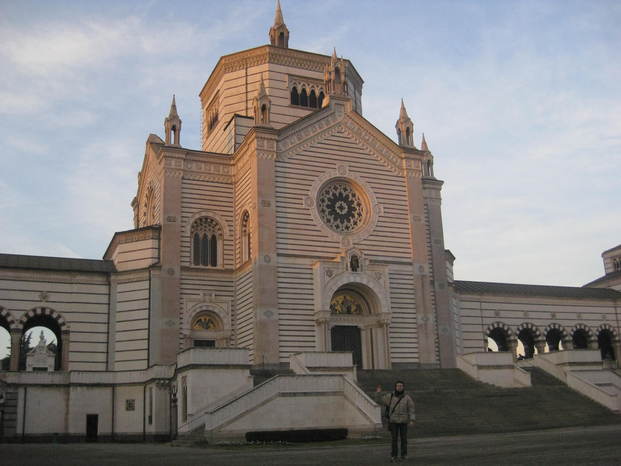 Ragazzi, 250.000 metri quadri tra il Romanico e il Gotico. La zona imperdibile è sicuramente il Famedio, il tempio dei milanesi illustri: qui troviamo la tomba di Alessandro Manzoni, ma anche quella del mitico Giuseppe Meazza, fino a quella di Alda Merini. L'atmosfera - sarà perché è inverno e sta venendo buio - è di una strana quiete mistica.