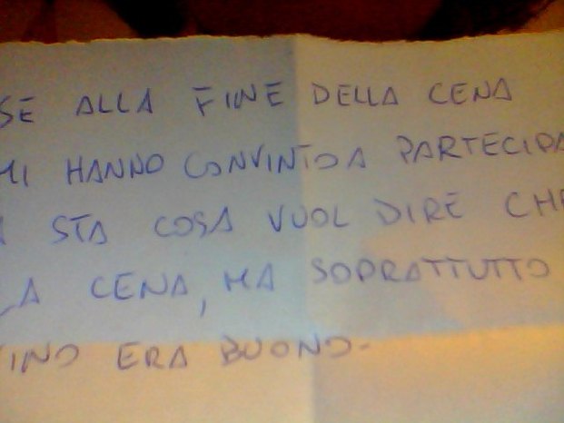 Motivo della cena?ragazzi domani sera si festeggia a casa mia,ho vinto euriiiiii 50,000!!!!!!!!!Naturalmente tutto falso,è un pretesto per organizzare la cena,mostro una fotocopia del biglietto vincitore(avendo una tabaccheria potevo recuperarlo facilmente)