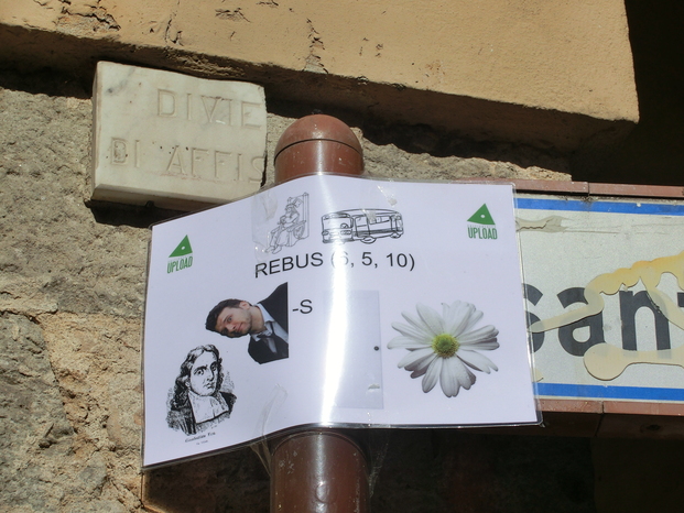 Scegli una strada o una piazza della tua città. Realizza un cartello con un rebus del suo nome e installalo accanto alla targa della via ufficiale.