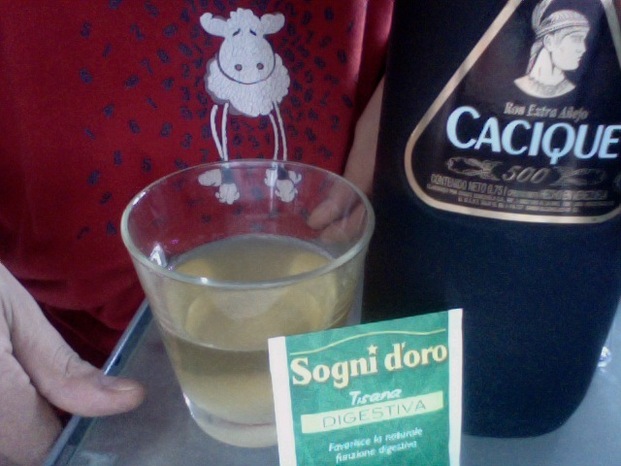 tisana digestiva + rum cacique extra anejo + pecora.
