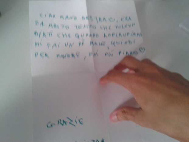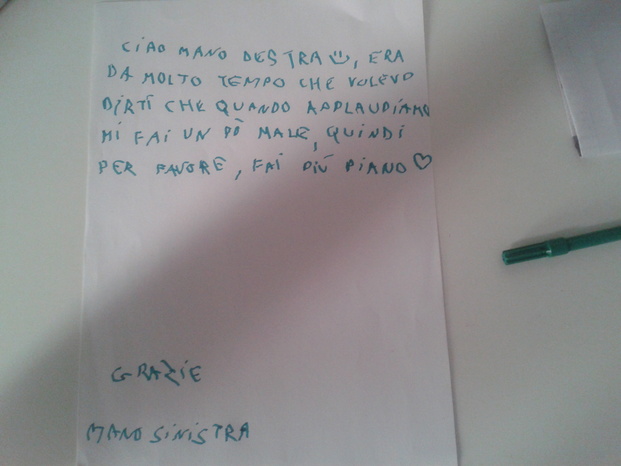 ho scritto una lettera alla mano destra :) in foto la potrete leggere :)