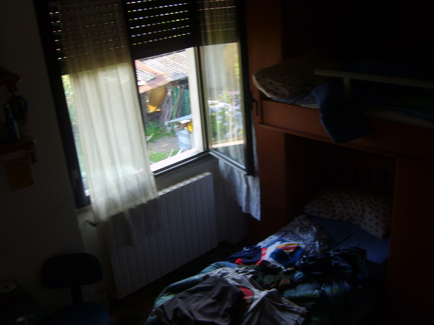 questa è la mia stanza. Un letto a "soppalco", un PC, uno stereo e svariati libri.