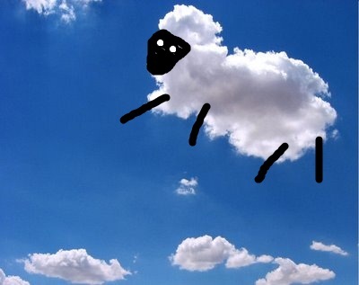 Dall'angolo del divano in cui sono, per quel che vedo dalla fessura della tenda non credo ci siano nuvole... quindi presa la prima immagine di nuvola che mi è capitata sul web, ho deciso che fosse l'animale a cui tutti associano le nuvole per eseguire la missione sulle nuvole (di cui non mi sforzerò di andare a cercare il titolo) niente tavoletta grafica perchè è troppo lontana.