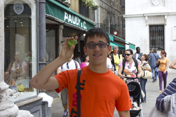 Ero in vacanza a Venezia per 9 giorni i primi sei giorni ho collezionato le cose triangolari da utilizzare per la missione e gli ultimi tre sono andato pian piano a disporli nei diversi ponti e posti di Venezia.