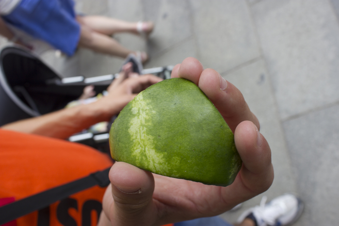 Procurati 5 oggetti triangolari e deperibili, riposizionali in luoghi inusuali ed affollati.