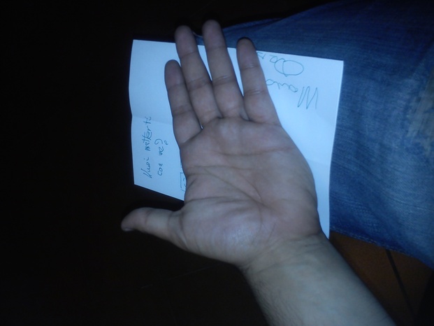 La mia mano sinistra. Sempre a servire la destra. L'ultimo sforzo della sua sofferente vita è stato scrivere (stile scuola media) una dichiarazione d'amore alla sempre preferita destra.