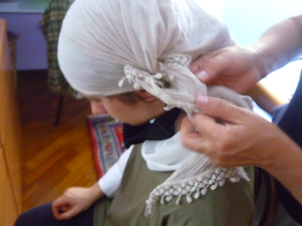 Mi sono sentita un po' modella per il numero di foto fatte stando in posa, un po' attrice per le espressioni da fare ("fai lo sguardo più trasognato, ora più deciso...") e un po' ccuer per far capire a mia mamma perchè dovessi cambiare personaggio (già il quadro è semplice, se poi ne faccio solo una versione!)