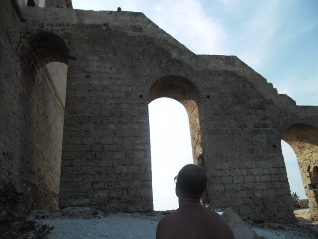 La vista è stupenda, la torre svetta li silenziosa e attorno pineta scogliera e mare, girandoci attorno si vede la costa sotto e mi dicono che li c'è Santa Caterina e Gallipoli!