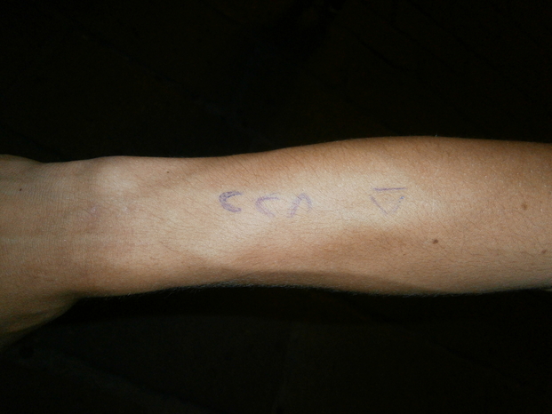 Intanto, vi vorrei raccontare della difficilissima creazione di questo timbro, probabilmente dovrò fare un video tutorial perchè è veramente complicata... Proverò a spiegarvela in poche parole: prendete una gomma, ci scrivete sopra con la penna, premete la gomma sul braccio del malcapitato.
