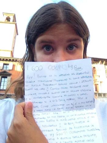 Hey! Anche io mi appresto ad eseguire questa istruzione! Ovviamente mi sono appostata in piazza Prampolini perchè voglio i 25 punti bonus del nodo :) Conosco poche persone che giocano, ovvero quelle che mi hanno ispirata e di conseguenza convinta ad unirmi a loro. Sto parlando di a wild Marcy appears, War e Bèlakor (che indovinate un po', è il mio moroso!) Inizia a farmi male la mano, ahia! Vediamo un po' che altro potrei dire..ah si! In questo periodo sto lavorando da mio padre, in un'agenzia immobiliare, ma non riesco a combinare nulla e ho paura di deluderlo :( Va beh, questa è l'ultima settimana perchè poi ricomincia la scuola...oh my God!!! Oltretutto quest'anno ho l'esame, oltre a quello della patente, agli allenamenti e tante altre cose (ovvero CCU XD) Ancora 1.42 min, dai che ce la faccio! La mia mano implora pietà, dopo che le ho scritto una lettera d'amore...non è giusto! D: Non vedo l'ora di tornare a casa per guardare RealTime con la mia gattona! Tempo scaduto, ciao!!!