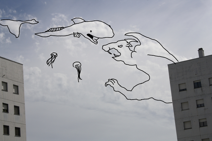 ecco, questa non la so proprio descrivere, tranne che Jabba the Hutt, che si sta mangiando l'antenna del palazzo di fronte