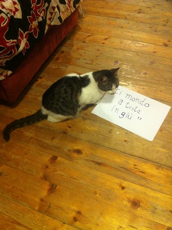 Se osservo "il mondo a testa in giù", ovvero un foglio con scritto "il mondo a testa in giù", mentre sono a testa in giù, sto osservando il mondo a testa in su?