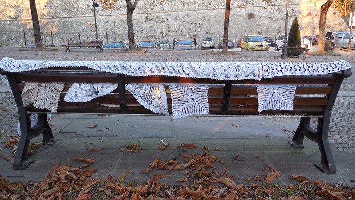 Certo con i centrini della nonna la panchina ha tutta un'altra classe!