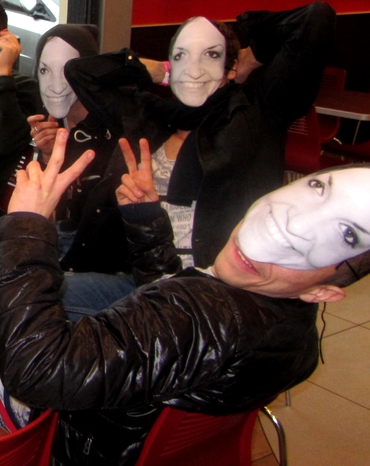 si sono divertiti tantissimo. ogni istante sottolineavano l'assurdità della situazione. uno forse aveva bevuto un po' troppo perchè ha indossato la maschera al contrario.