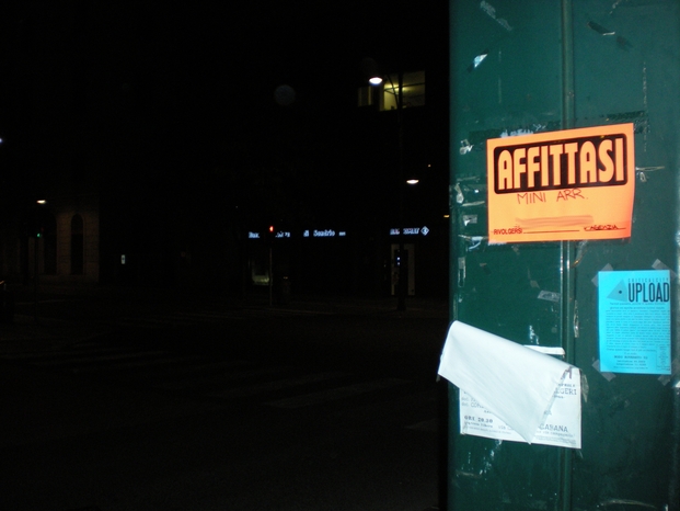 Quarto e ultimo volantino messo di sbieco sul lato ovest dell'incrocio, accanto ai già famosi burattini.