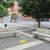 così forbici e scotch telato giallo e verde ci hanno aiutato in una torrida giornata di sole a colorare due panchine monocromatiche.