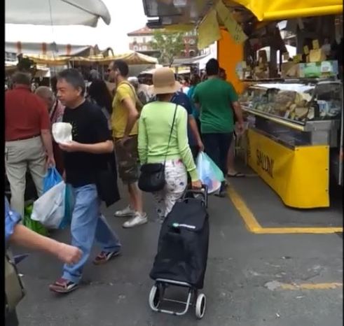 ...con la sua borsa la folla non la schiaccia, povera vecchia...