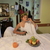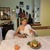 sta di fatto che stamattina dopo la colazione subito comincio a rovistare per casa alla ricerca di oggetti utili alla scenografia: un bicchiere, una brocca, cuscini e lenzuoli per fare la "poltrona", frutta e foglie per ricreare la pettinatura davvero fashion di bacco.