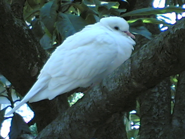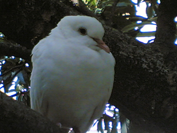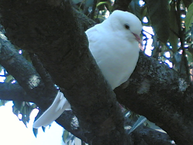 su un ramo del mio nodo stamattina si è posato lui, tutto bianco ed infreddolito.....che sia migrato troppo presto? che sia un piccione albino? che sia la colomba della pace inviatami da qualcuno? mah....