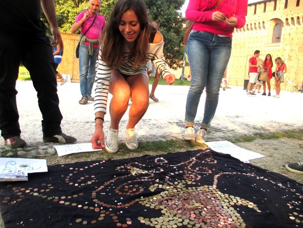 Dopo ore di lavoro, ricerca, costruzione, esserci nell'istante in cui una signora posa nel mandala la novecentonovantanovesima moneta è una cosa che ti lascia senza fiato.