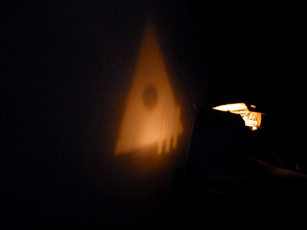 Hai presente le lanterne dove metti la candela e hanno i buchi a forma di stelline, per illuminare la stanza a stelle? ..ecco. Solo che noi ci facciamo il nostro logo!