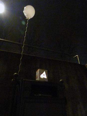 Non c'era un punto che permettesse di lasciarla e proiettare il logo in vista, allora l'abbiamo lasciata come lucina nella piazza, a far compagnia ad un palloncino...