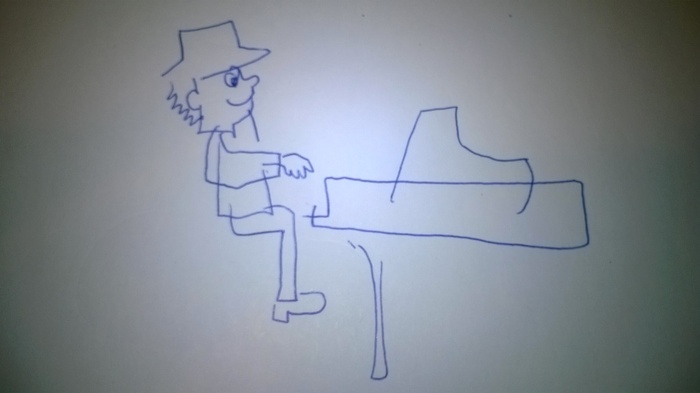 Premesso che la scelta del soggetto non sia stata semplice, è stata un'operazione difficile, ma decisamente divertente. Anche un po' imbarazzante, a dir la verità. O meglio, imbarazzante è pubblicare il prodotto! Un pianista jazz (seduto su uno speciale seggiolino invisibile - ok, mi sono dimenticata di disegnarlo!) su un bellissimo (ah-ehm...) Steinway and Sons.