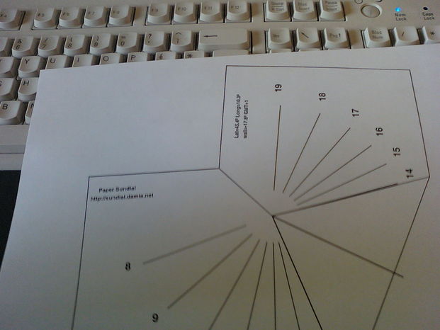 Dopo una ricerca in internet per poter trovare una meridiana con del senso...parte la solita stampa, ritaglio, fissaggio!!!
