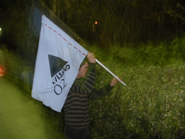 Volevamo arrampicarci sul tetto e simulare l'atto della fine della seconda guerra mondiale ma con il buio era abbastanza pericoloso...per ora la bandiera è comoda nella siepe...se verranno a lamentarsi allora potrete ammirare anche la simulazione in allegato ;)